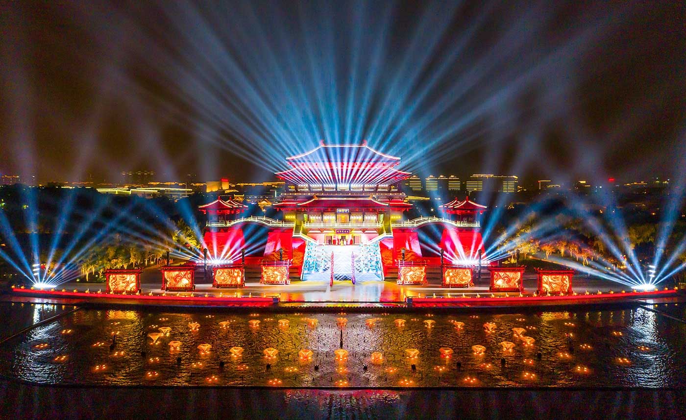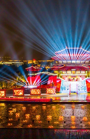 一池曲江水,千秋盛唐夢(mèng)。《大唐追夢(mèng)》演出是大唐芙蓉園即將推出的大型水舞光影秀,演出是由國(guó)家級(jí)制作人沙曉嵐擔(dān)任總導(dǎo)演,G20杭州峰會(huì)《最憶是杭州》、北京冬奧8分鐘執(zhí)行導(dǎo)演王醒及團(tuán)隊(duì)匠心打造的具有西安曲江特色“日游夜演”的全新概念文旅演藝產(chǎn)品。 大型水舞光影秀《大唐追夢(mèng)》依托芙蓉園恢弘大氣的山水園林景觀(guān),將盛唐文化和游客參與深度結(jié)合,通過(guò)場(chǎng)景、故事的演繹和各類(lèi)新技術(shù)的運(yùn)用,從內(nèi)容上嘗試將觀(guān)眾心境與劇中的實(shí)景環(huán)境相銜接,踐行一種新的“游船尋夢(mèng)”的體驗(yàn)關(guān)系。 觀(guān)眾席采用了“游船觀(guān)演式體驗(yàn)”形式,共設(shè)五艘游船,每艘游船可乘坐觀(guān)眾160人,共800座。觀(guān)眾乘船泛舟看演出的同時(shí),還能在水上游弋暢玩,隨著美輪美奐的場(chǎng)景,去探索神秘莫測(cè)劇情。展示出芙蓉園亭臺(tái)樓閣溢彩、廊橋水波輝映的迷人景致。營(yíng)造出穿越千年,貫穿古今的浪漫意境,讓觀(guān)眾真切感受古樸濃郁的盛唐文化氣息。 整場(chǎng)演出的表演區(qū)則通過(guò)多組可升降水幕景觀(guān)藝術(shù)裝置、多色激光投射、多維水噴泉設(shè)備、霧森系統(tǒng)、建筑投影、沉浸式環(huán)繞音響等現(xiàn)代科技手段,烘托美輪美奐的獨(dú)特意境,呈現(xiàn)出一臺(tái)全新沉浸式全域水幕景觀(guān)秀,讓觀(guān)眾全身心地融入、盡享文化盛宴。 風(fēng)光旖旎迷人處,最是曲江夜游時(shí)。當(dāng)夜幕降臨,夢(mèng)幻光影下的紫云樓無(wú)處不透露著濃郁文化氣息,芙蓉園用色彩相宜的照明設(shè)施,形成豐富的視覺(jué)層次感,營(yíng)造雅致的夜游氛圍,使紫云樓夜間樓體的塑造、光景氣氛、照明效果更加立體、生動(dòng),為景區(qū)增添新的魅力。 演出中還大量加入了時(shí)下最先進(jìn)、最流行的透明“冰屏”,有了冰屏加持,舞臺(tái)效果瞬間變得驚艷。觀(guān)眾在觀(guān)看時(shí),畫(huà)面懸浮于空中,清晰通透,像浮在透明玻璃上一樣,享受著如夢(mèng)如幻的沉浸式視覺(jué)新體驗(yàn)。 引人入勝的演出內(nèi)容、驚艷新奇的舞臺(tái)效果、豐富有趣的游玩體驗(yàn),大唐芙蓉園用拳拳誠(chéng)意帶游客閱讀歷史、感受人文。大型水舞光影秀《大唐追夢(mèng)》演出不僅展現(xiàn)出樹(shù)立旅游市場(chǎng)新旗幟、全力打造夜游市場(chǎng)新勢(shì)力的超強(qiáng)勢(shì)頭,更力圖將絢麗多彩、大氣恢宏的盛唐歌舞文化推向世界。 ...
