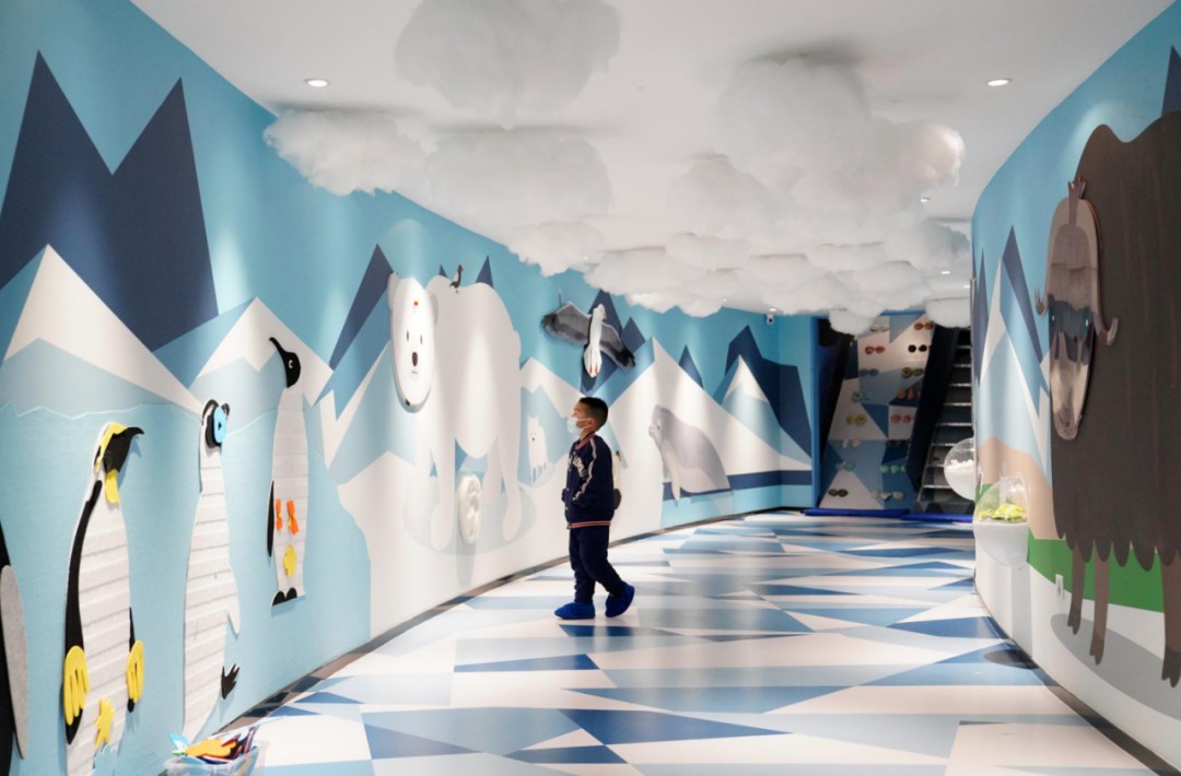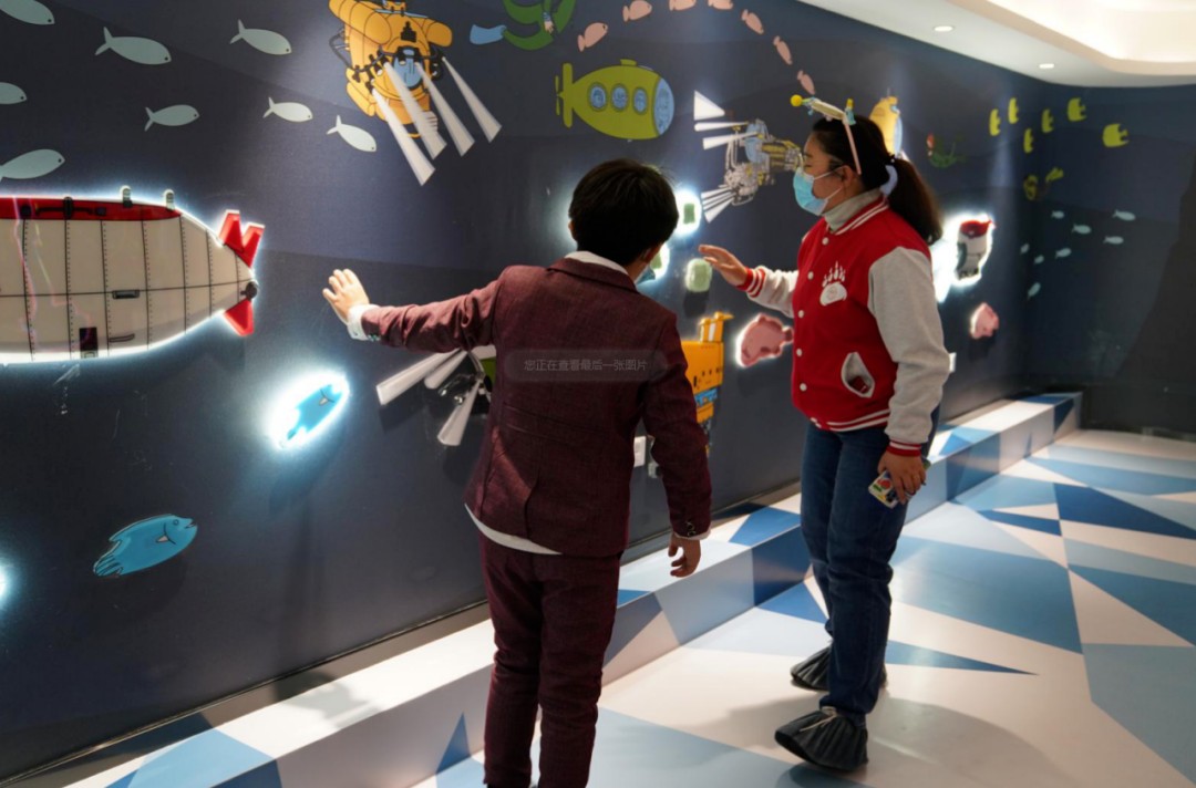 以中國(guó)南極泰山極地科考站為原型,打造的海洋美育中心,全場(chǎng)景的沉浸式體驗(yàn)空間,體驗(yàn)者身份扮演“小小科考隊(duì)員”,通過(guò)語(yǔ)音互動(dòng)、聲光電特效等“黑科技”帶來(lái)震撼視聽(tīng)。